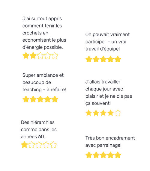 Avec plus de 2’000 évaluations d’employeurs par d’autres médecins et étudiant·e·s en médecine en année de stages, tu obtiens des aperçus authentiques sur l’ambiance de travail, la formation continue et l’équipe. Connecte-toi, lis les avis et partage tes propres expériences.